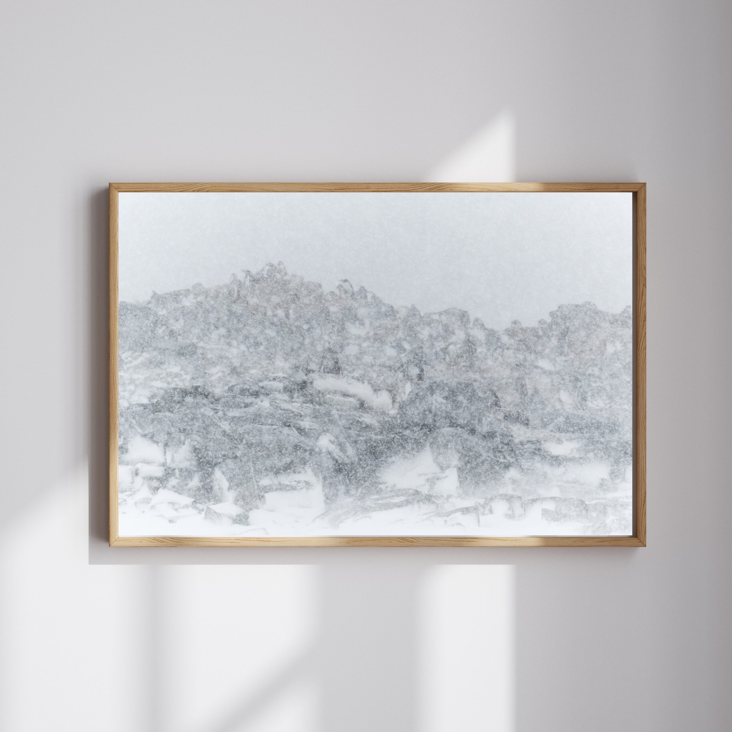 Sous une représentation abstraite d’une colonie de manchots, l’image reflète le climat anxiogène de ce monde. Sans vraiment comprendre ce que l’on voit, les flocons balayés par les rafales extrêmes laissent place à l’imagination sur ce que cache ce blizzard.